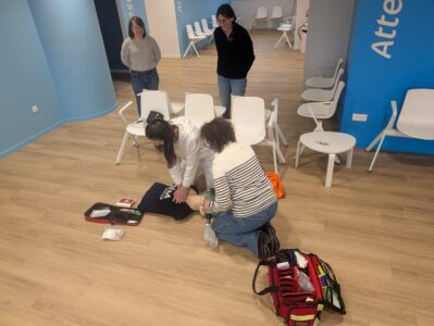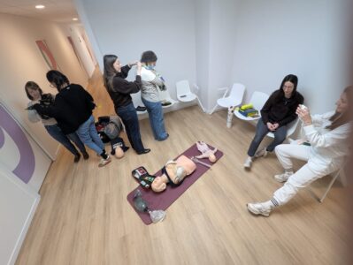 Au programme : gestes d’urgence, utilisation du défibrillateur, mises en situation… et un peu de cardio (surtout pour les mannequins 😉).